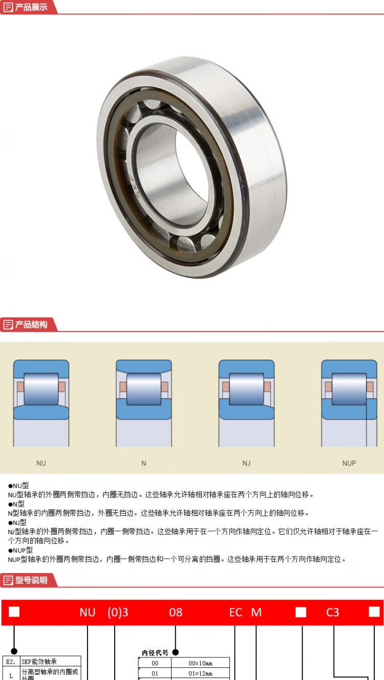 斯凯孚 圆柱孔调心滚子轴承 NU307ECP/C3 圆柱孔 冲压钢板 1套