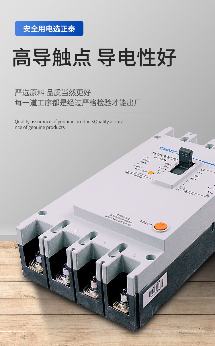 正泰 塑壳漏电保护断路器 DZ20L-250/4300-250A-100mA透明-G 透明 250A 4P 热磁式脱扣 100mA 1个