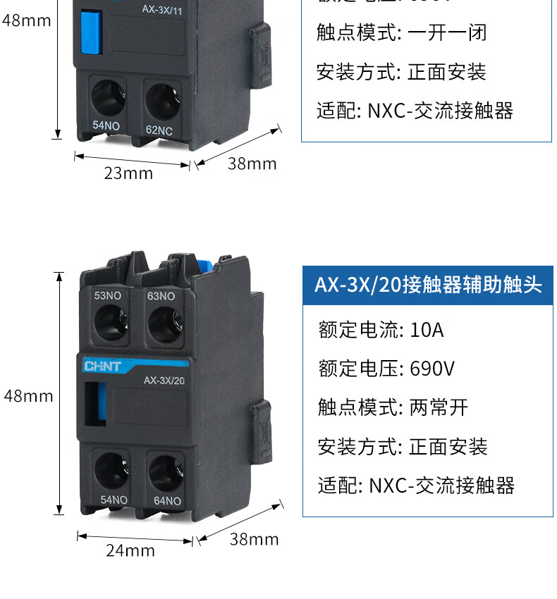 正泰 交流接触器辅助触头 AX-3X/02 2NC 10A 690V 1只