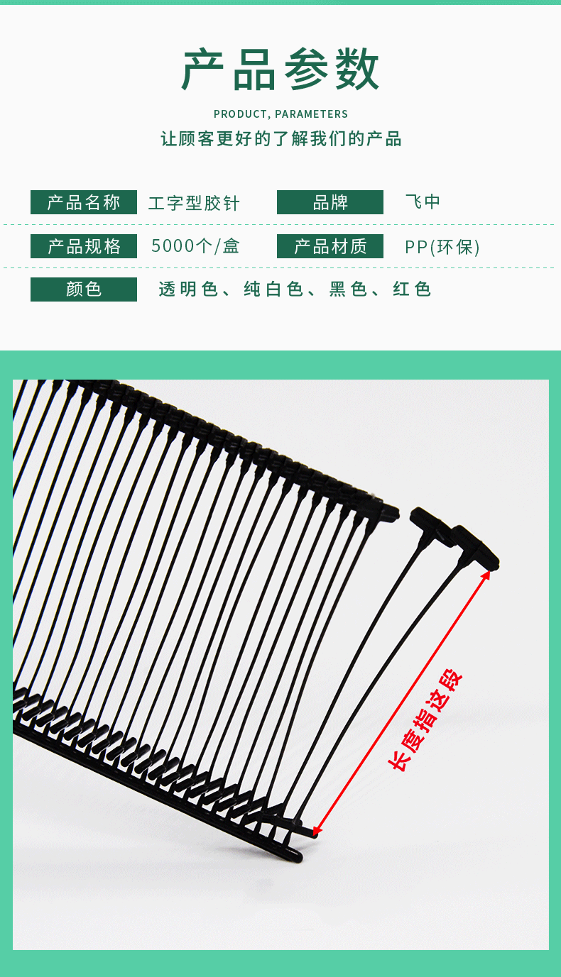 亚仑 工字型胶针 黑色 PP材质 35mm 1盒