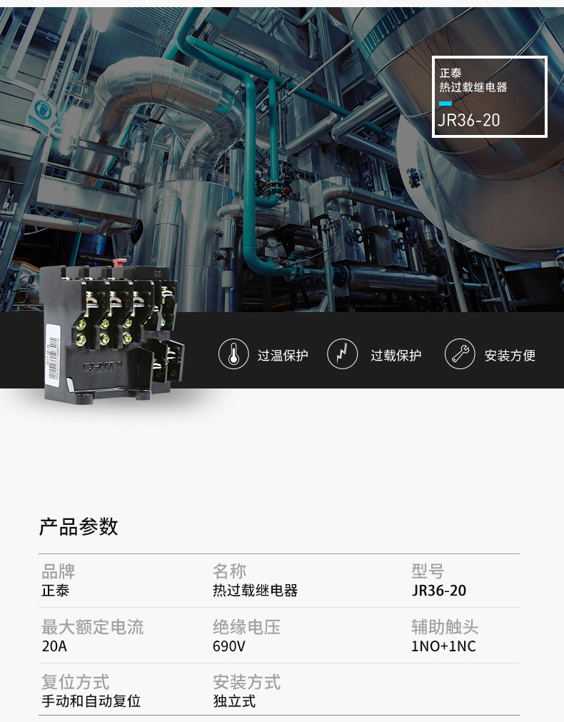 正泰(CHNT) JR36系列热过载继电器 JR36-20 6.8-11A 1个