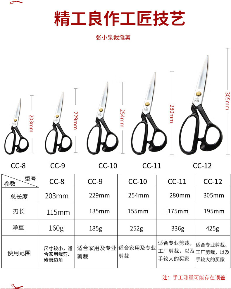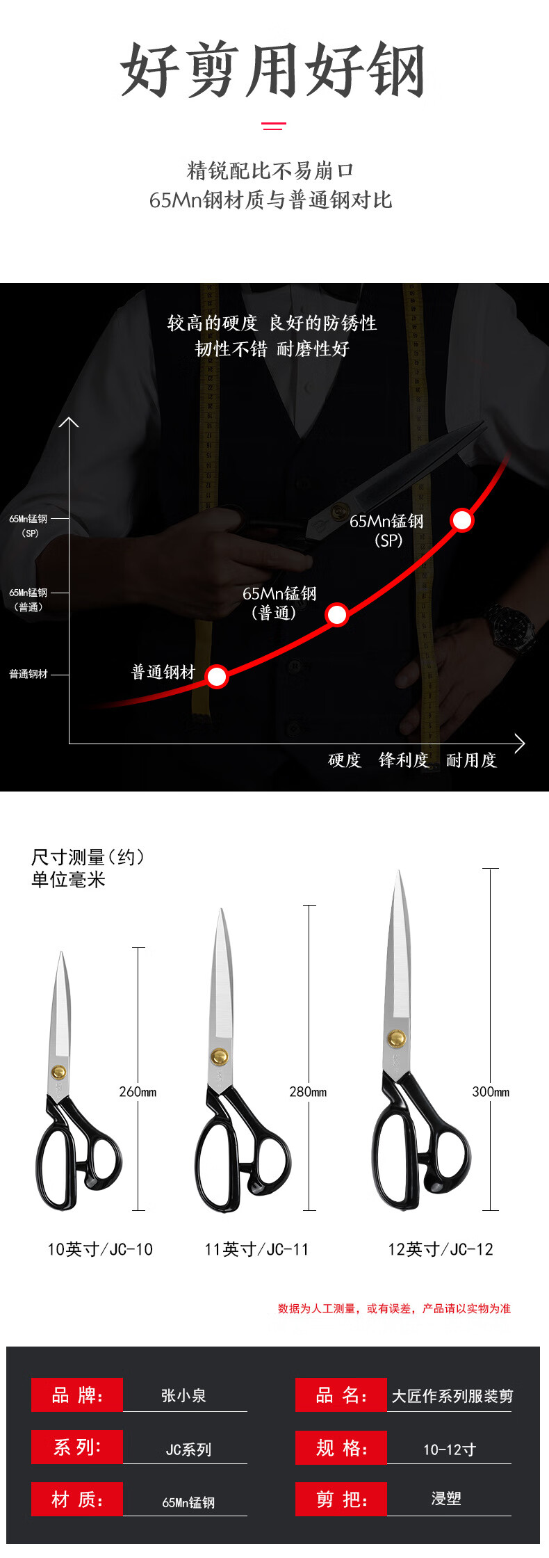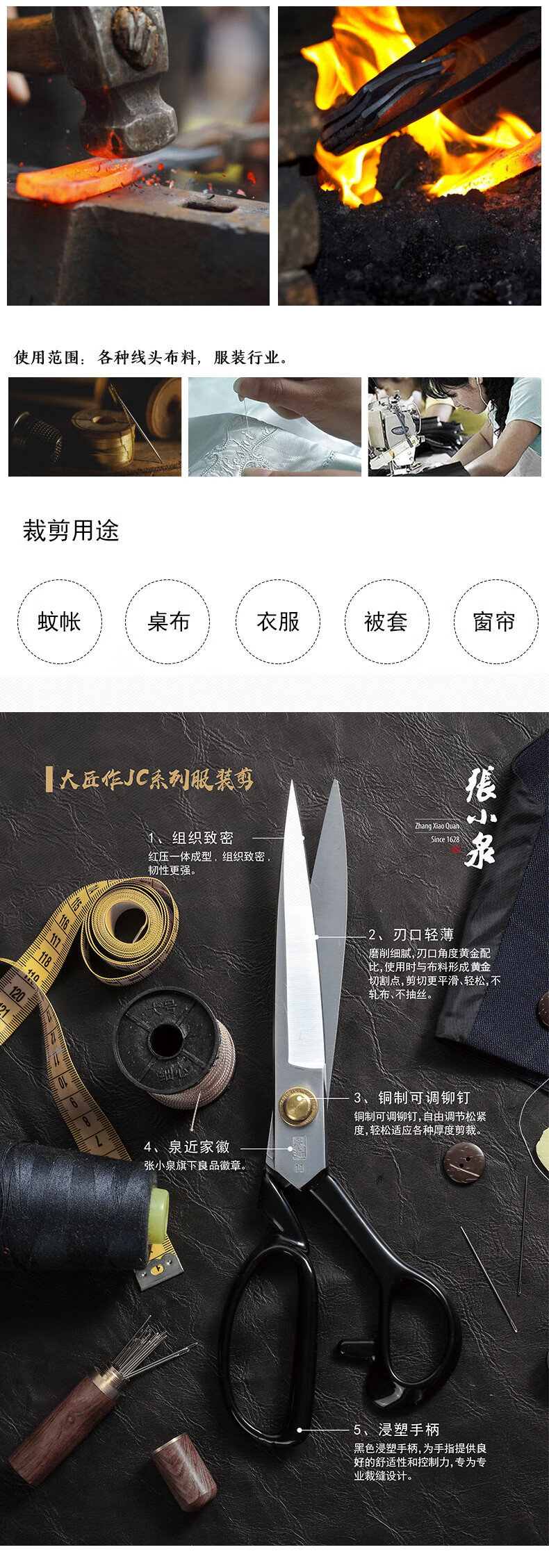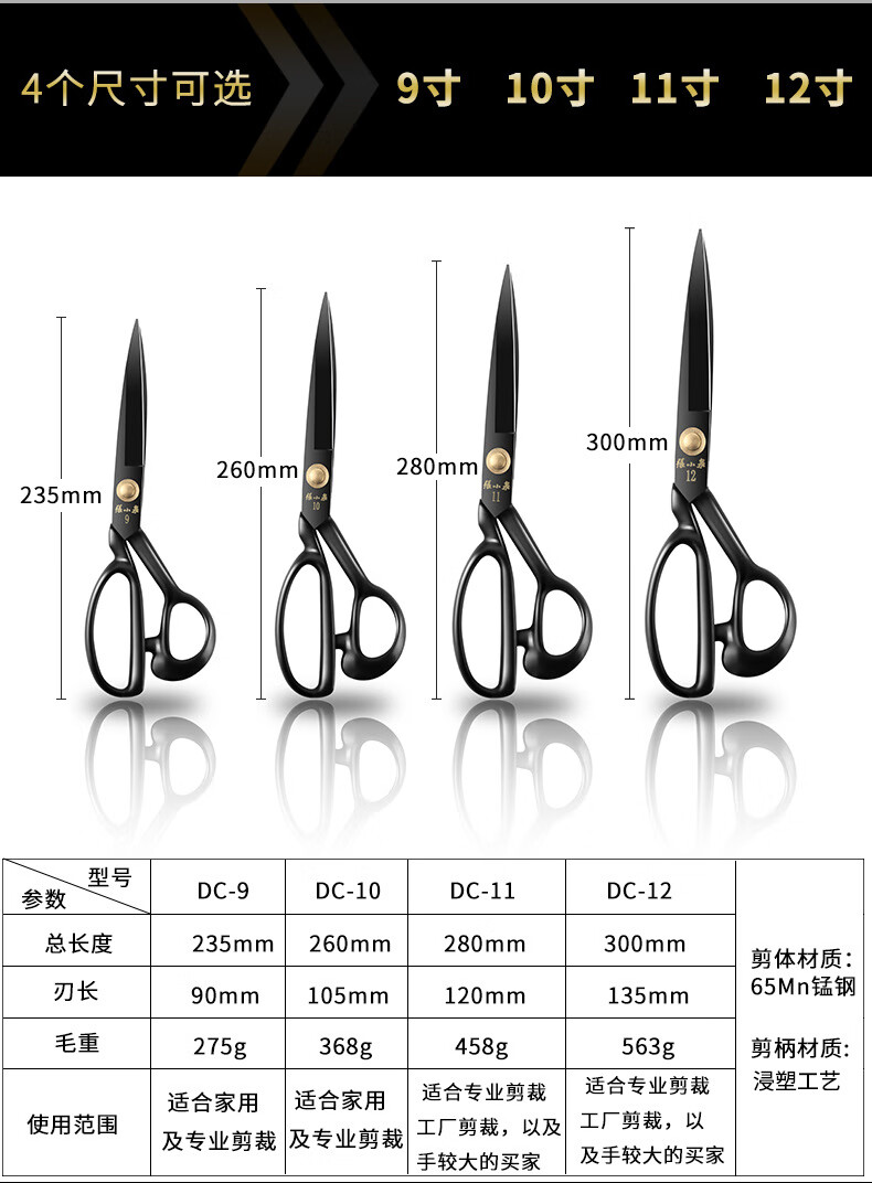 张小泉 PC系列裁缝剪刀 CC-9 229*135mm 9寸 黑色 1把
