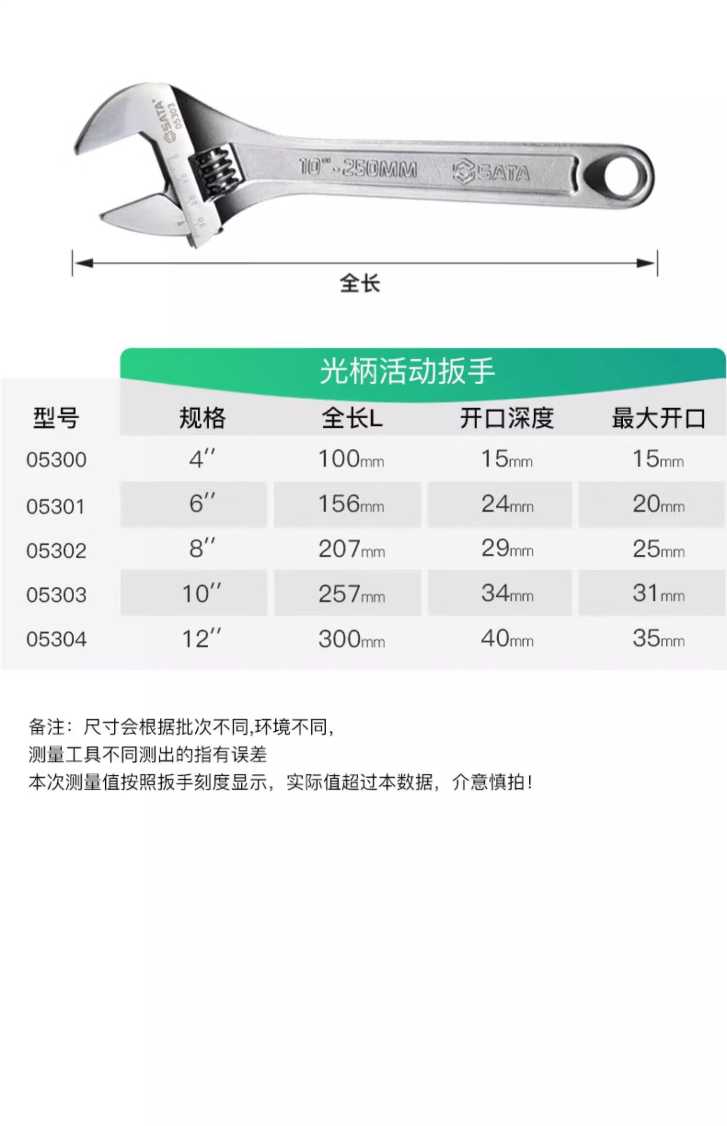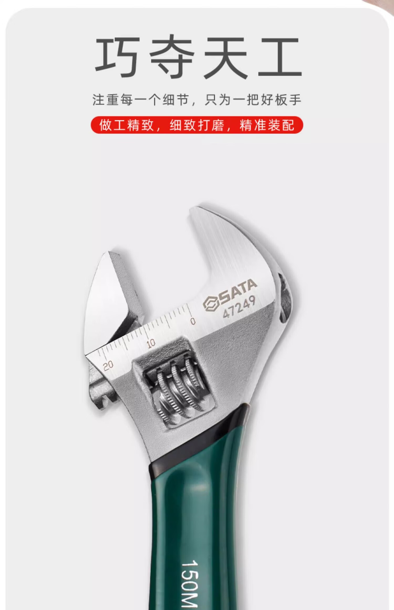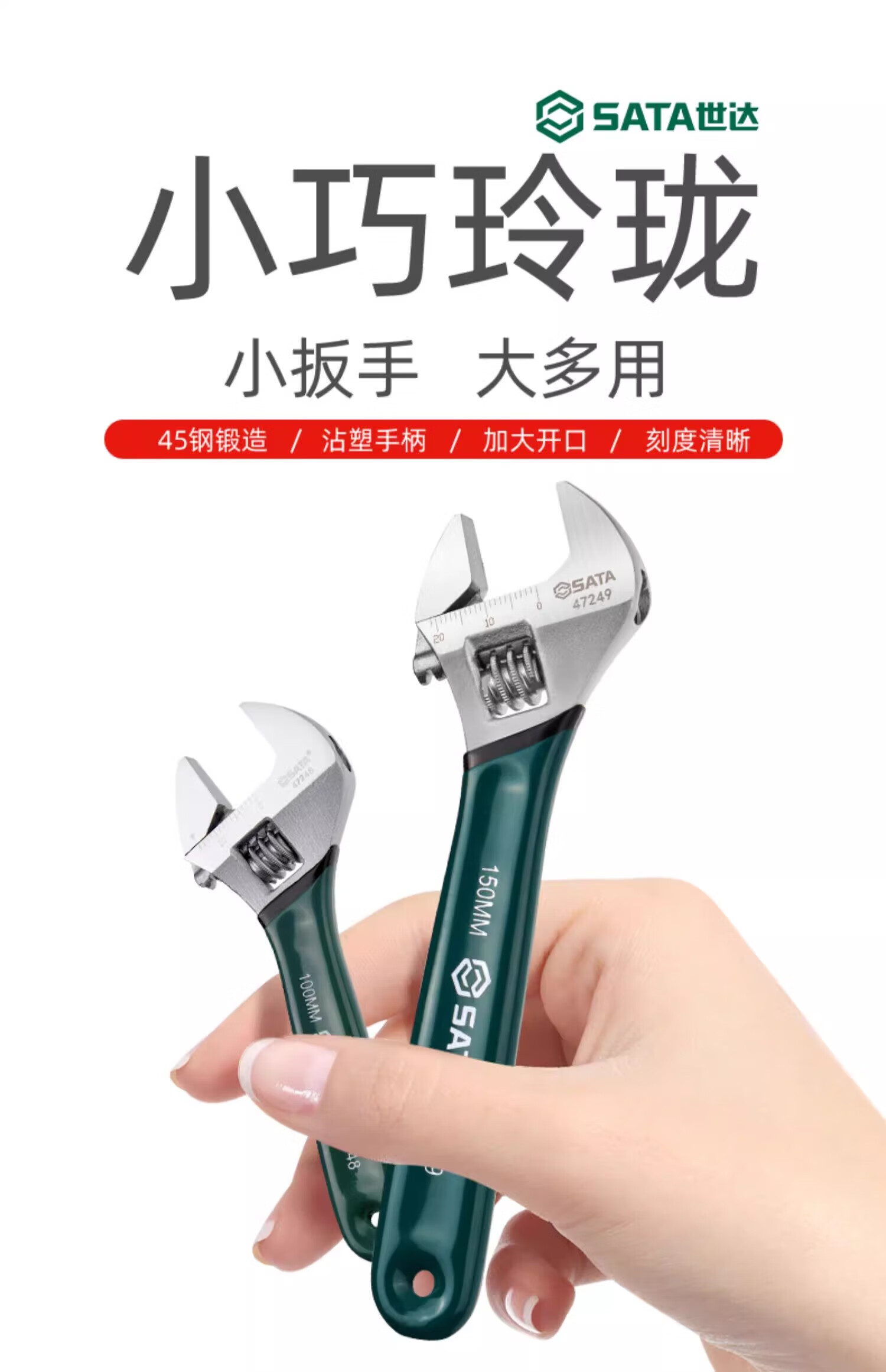 世达(SATA)小扳手迷你活动扳手小型大开口 4/6/8/10/12 18”沾塑柄(开口量56mm)/47254 1把