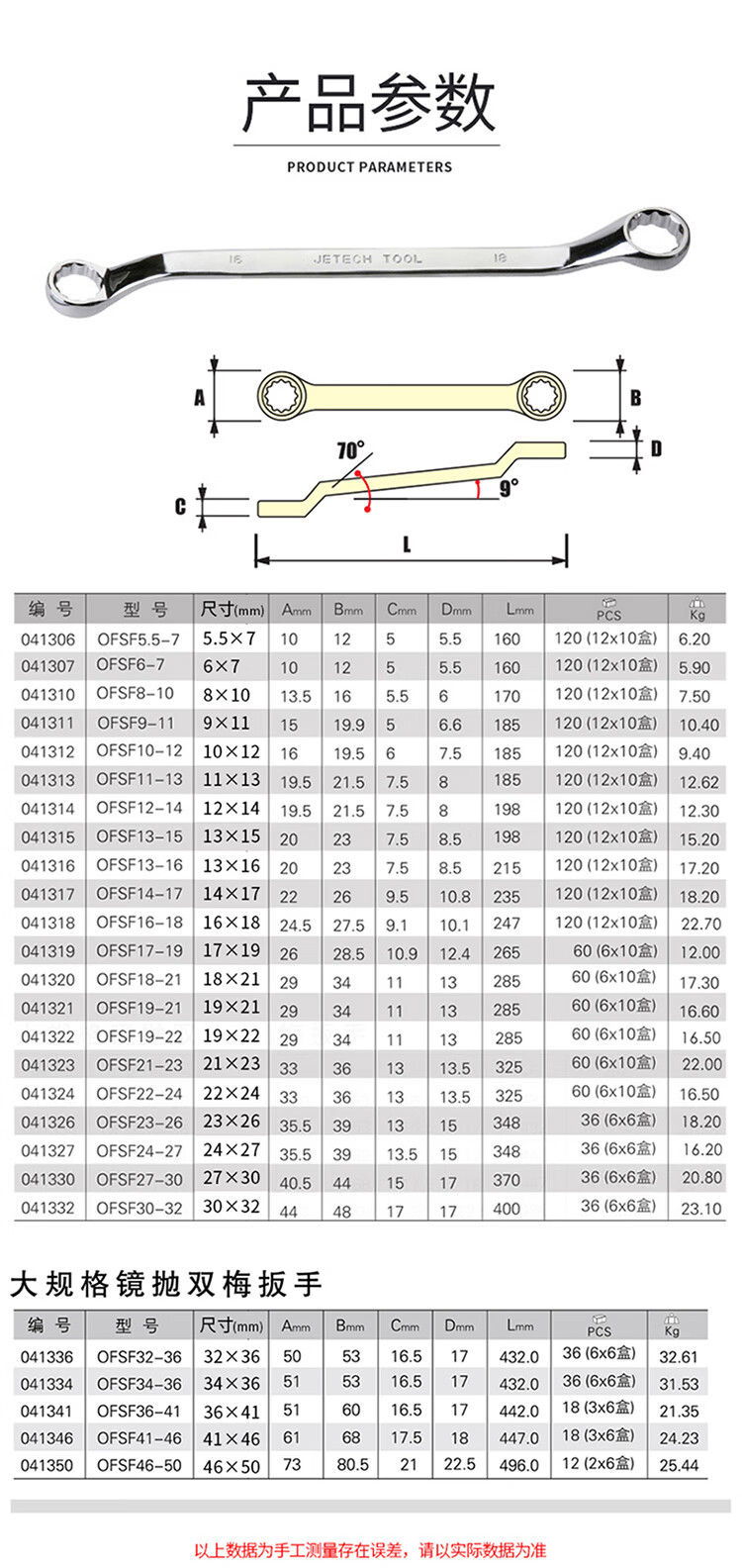 捷科 双头梅花扳手 OFSF36-41 碳钢 36/41mm 1把