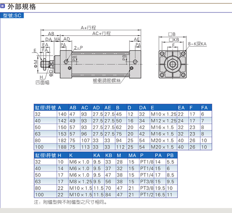 亚德客 SC32系列标准气缸 SC32*450 1个