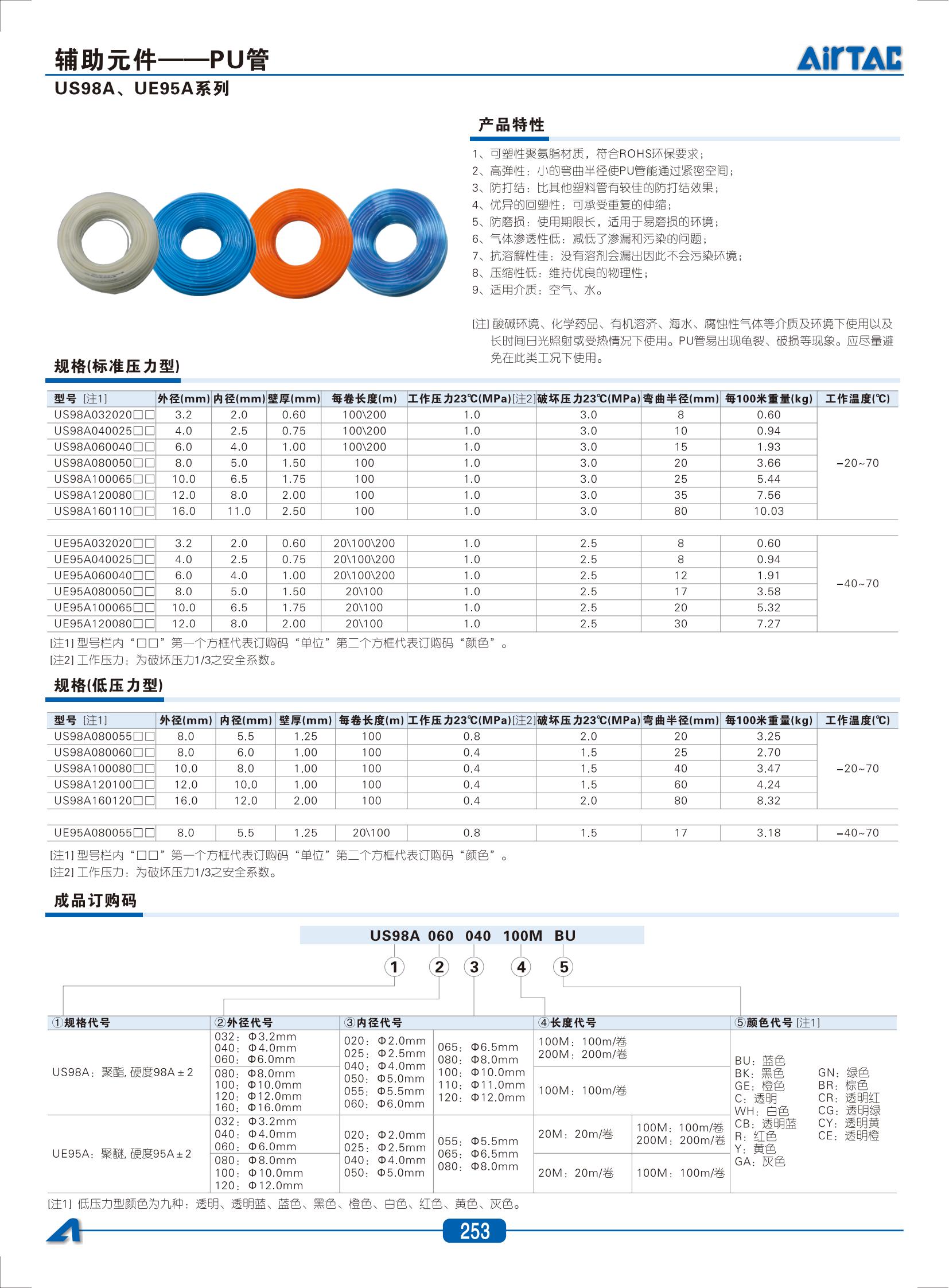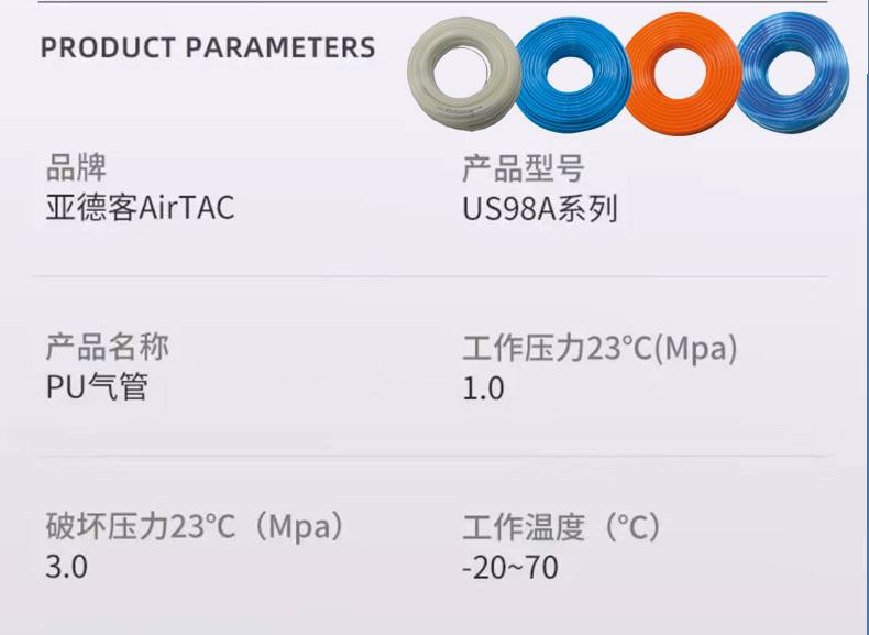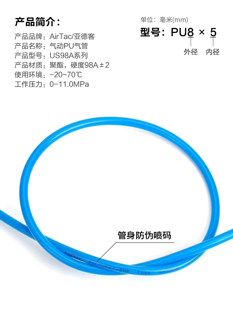 亚德客 US98A系列聚酯PU气管 US98A080050100MC 透明 100m 1卷