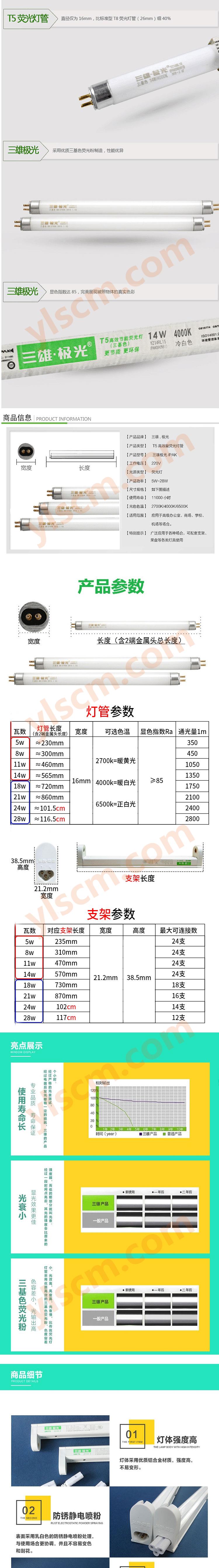 三雄极光 T5高效能荧光灯管 PAK090561 14W 60cm 1支