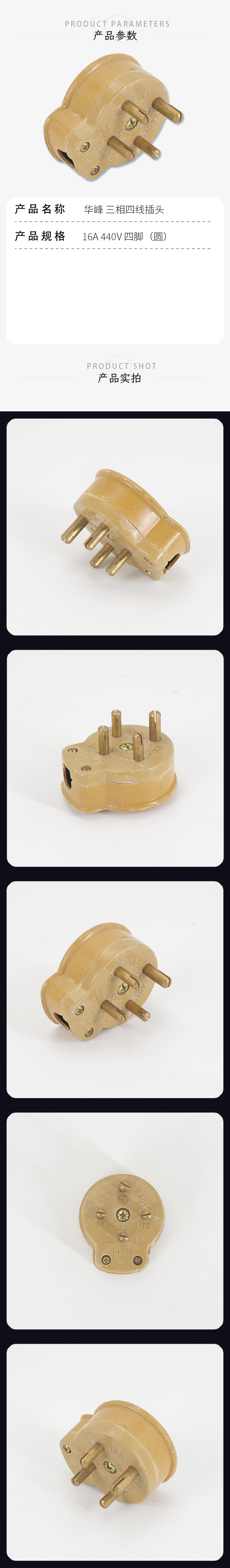 华峰 三相四线插头 四脚 圆 16A 440V 1个