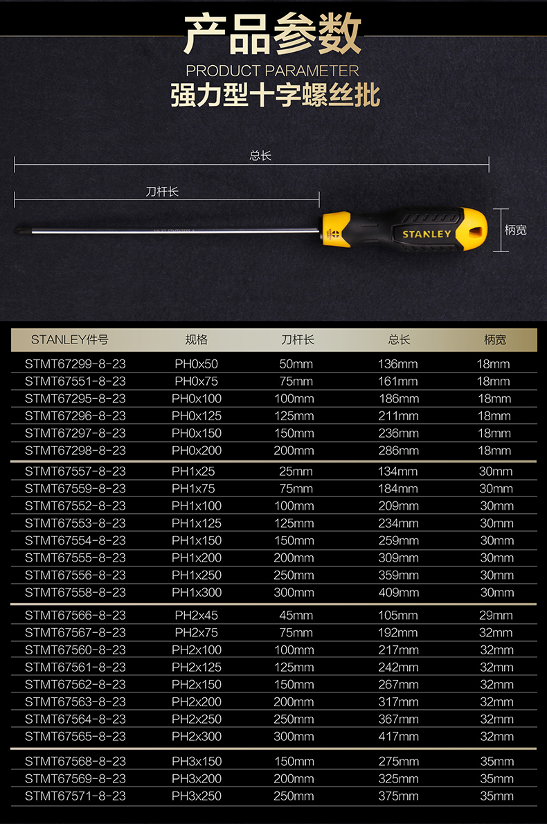 史丹利 强力型十字螺丝批 STMT67565-8-23 PH2x300mm 6mm 1把