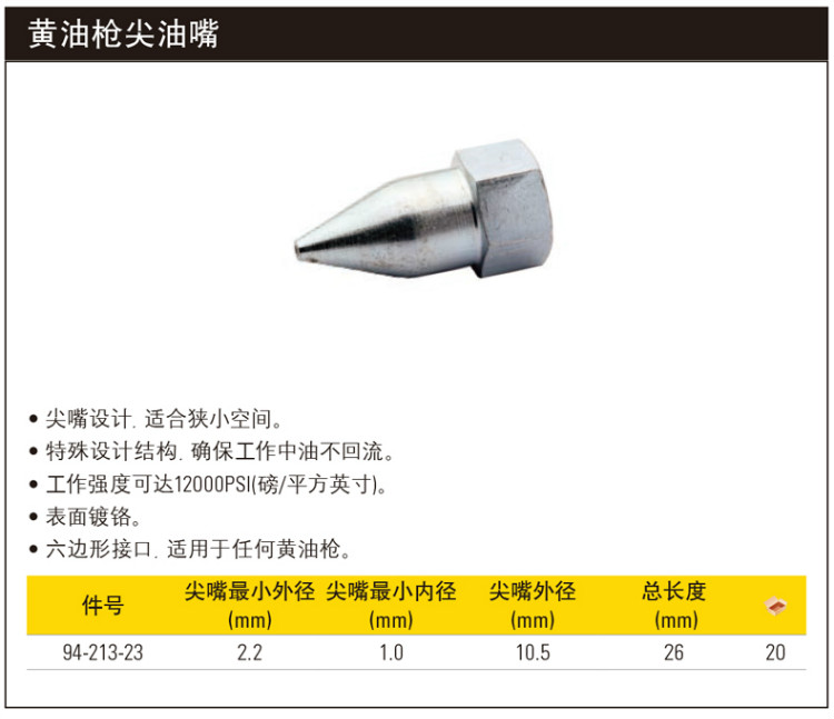 史丹利 黄油枪油嘴 94-213-23 表面镀铬 尖头 1个
