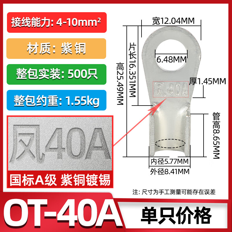 凤凰 紫铜镀锡国标铜鼻子 OT-40A 1个