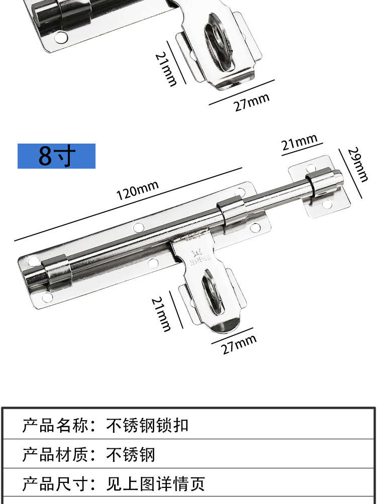 赫思迪格 不锈钢锁扣 JG-1328 带扣款6寸 3个 1件