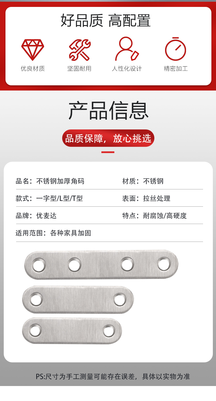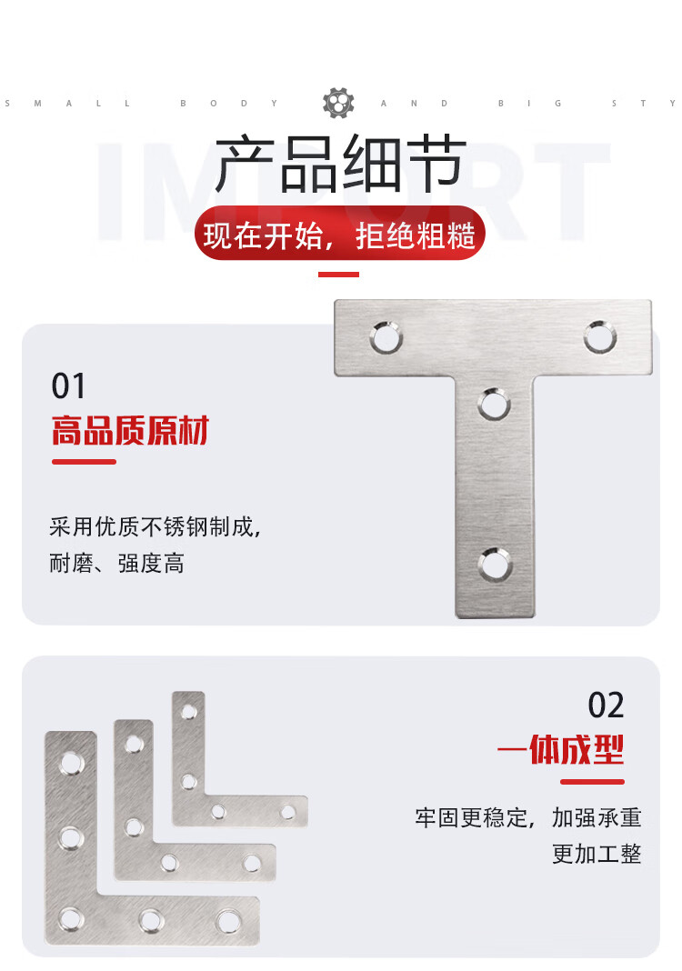 优麦达 角码 Y226 不锈钢 T型角码80*80mm 10片 1包