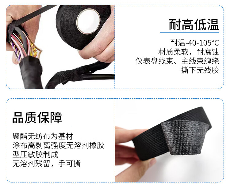 海斯迪克 绒布胶带 HKT-159 黑色 25mm*15m(1卷) 1卷