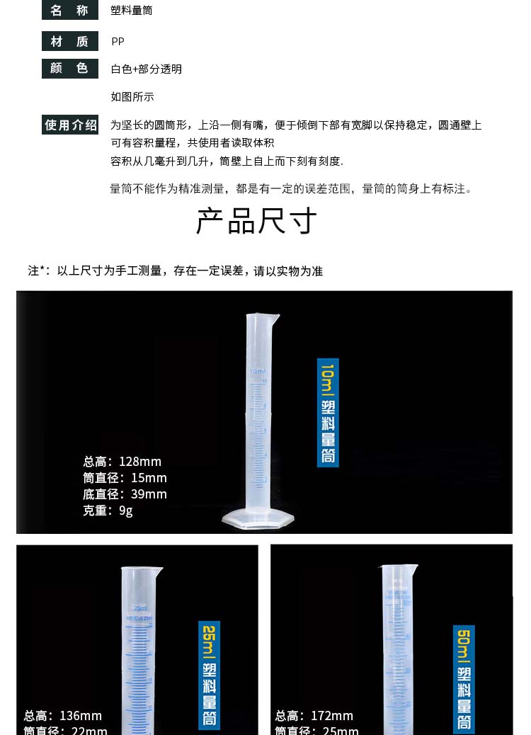 冰禹 塑料量筒 BYrl-200 10ml 1个