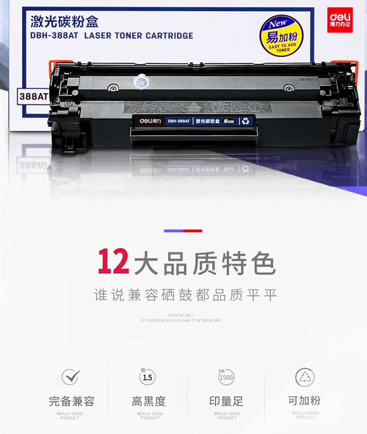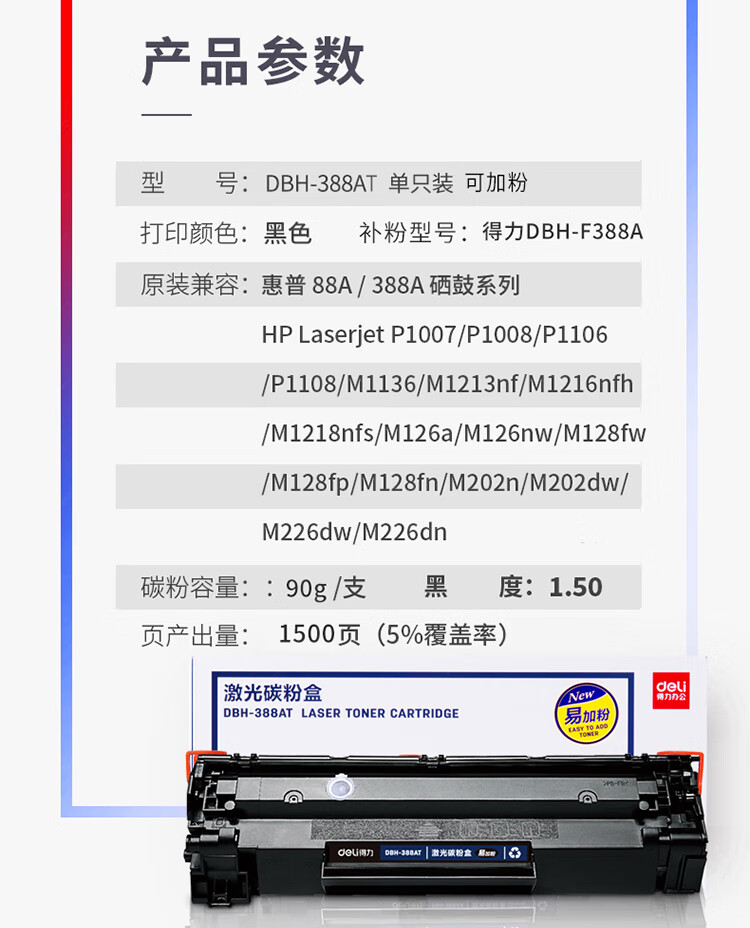 得力 激光碳粉盒 DBH-388AT 黑色 90g 1个