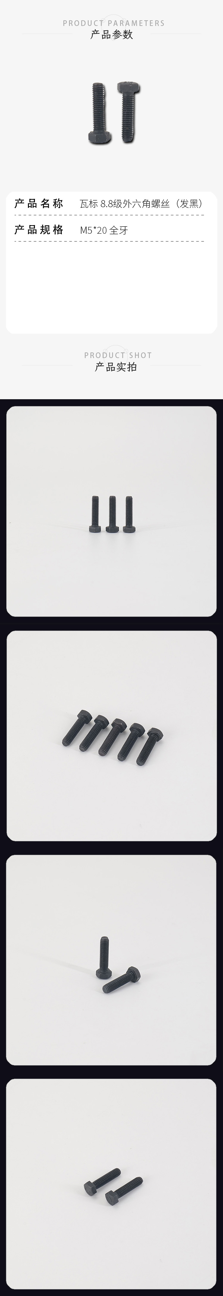 国产通用 8.8级外六角螺丝(发黑) M5*20 全牙 1颗