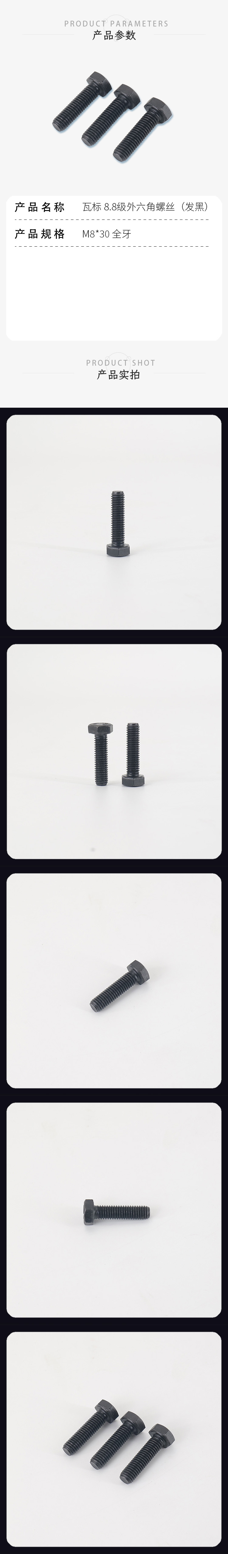 国产通用 8.8级外六角螺丝(发黑) M8*30 全牙 1颗