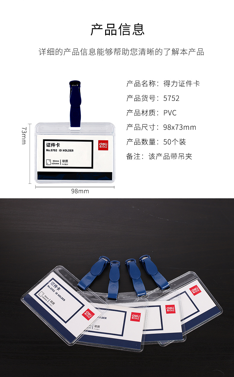 得力 证件卡 5752 蓝色 98×73mm 50个 1件