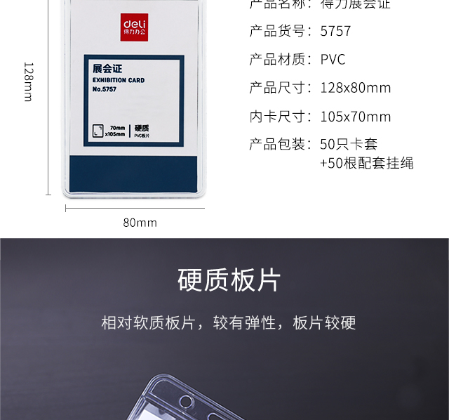 得力 证件卡 5757 透明 128×80mm 50个 1件