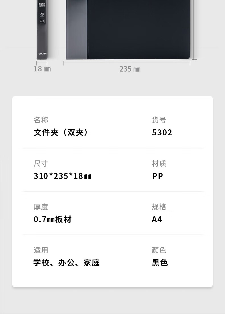 得力 文件夹 5302 黑色 235*310*18mm 1个