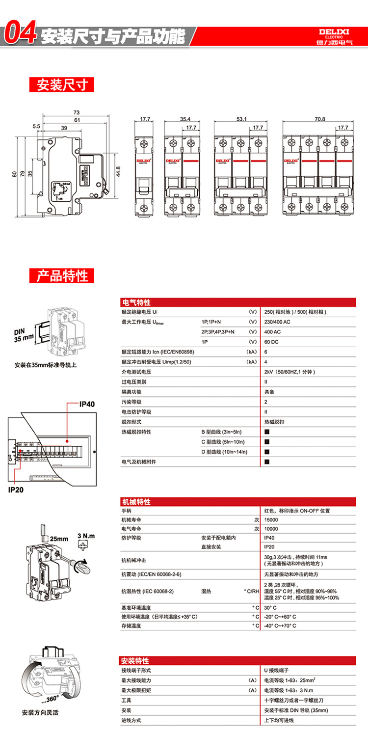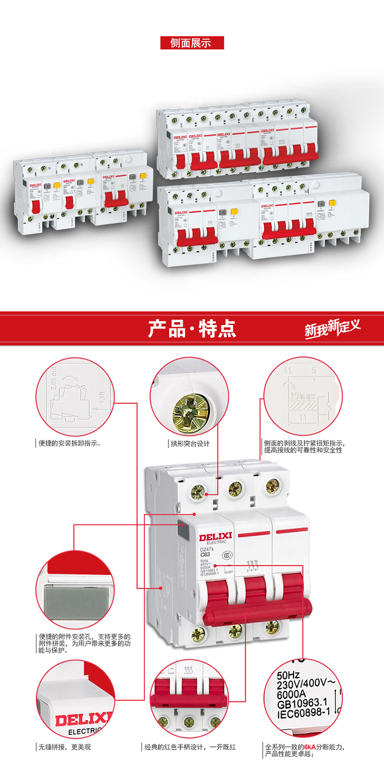 德力西电气 小型断路器 DZ47SN6C63 C型 63A 3P+N 1个