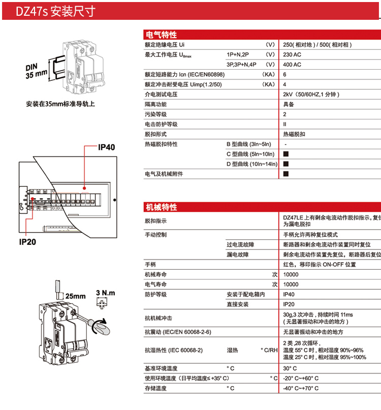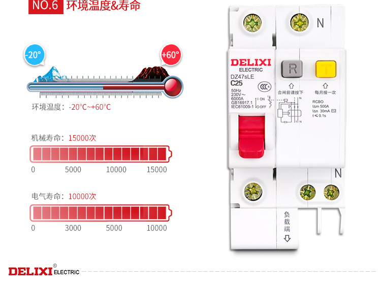 德力西电气 小型漏电断路器 DZ47SLEN1C6 1P+N C 6A 1只
