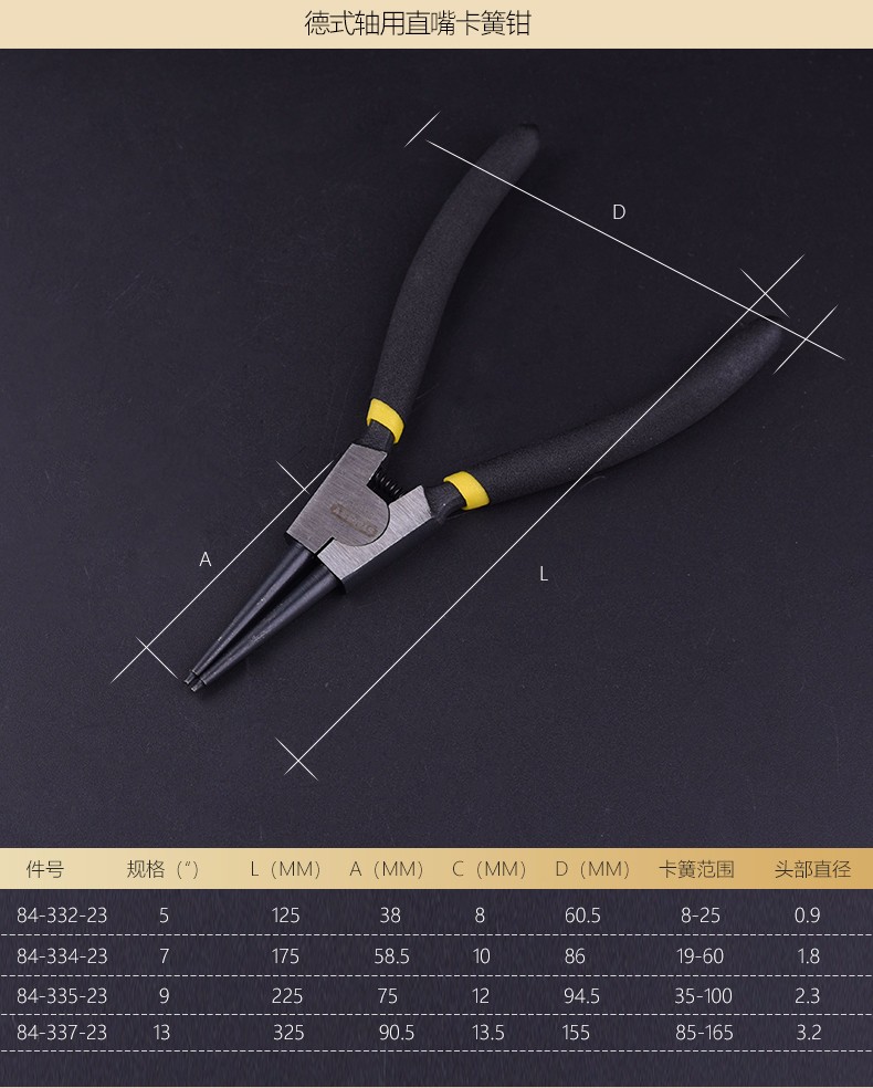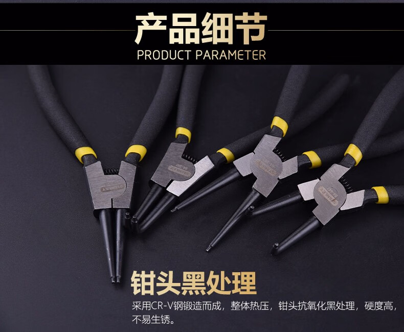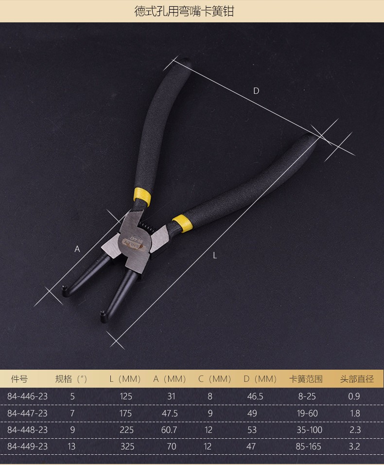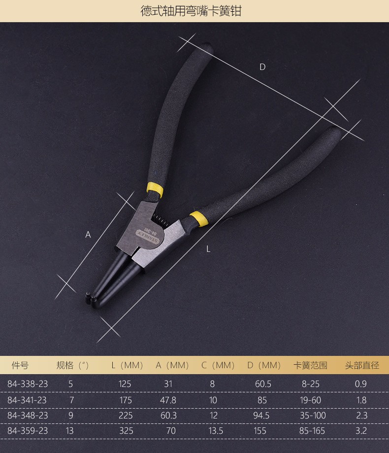 • 商品名称:史丹利 德式轴用弯嘴卡簧钳