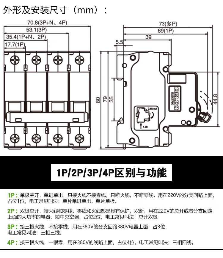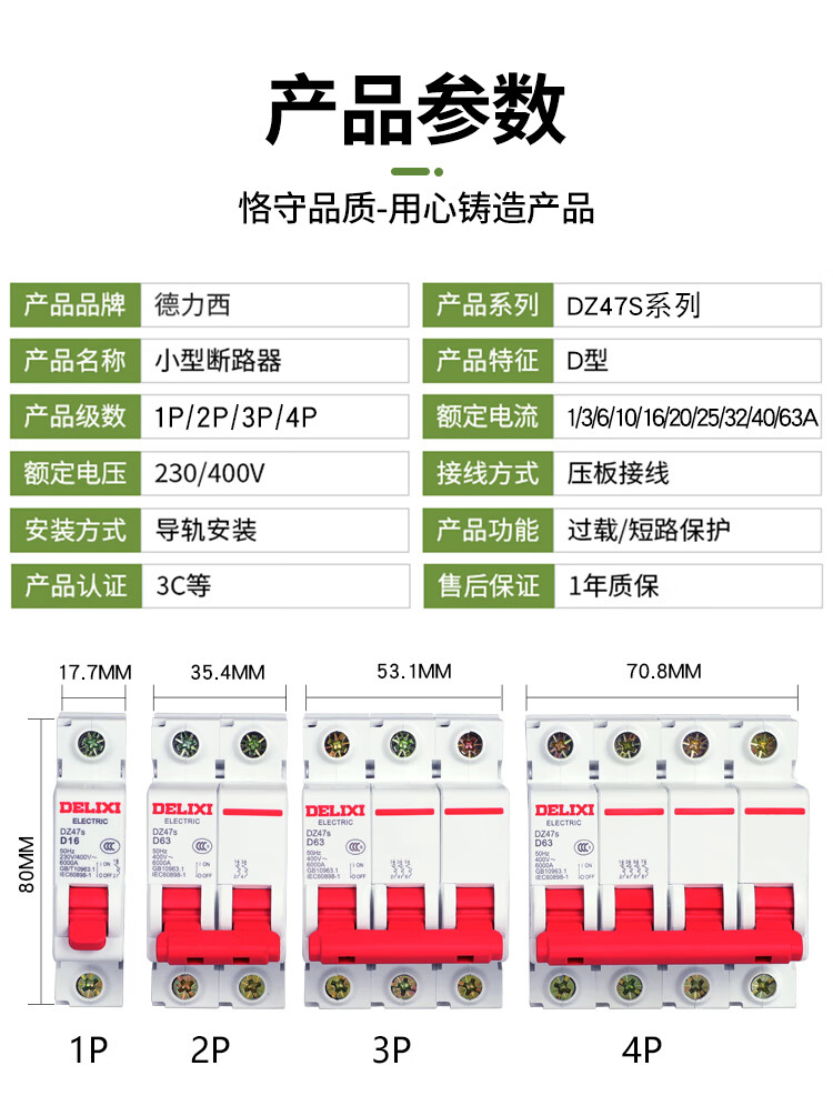 德力西电气 小型断路器 DZ47SN2D20 2P D型 20A 1个