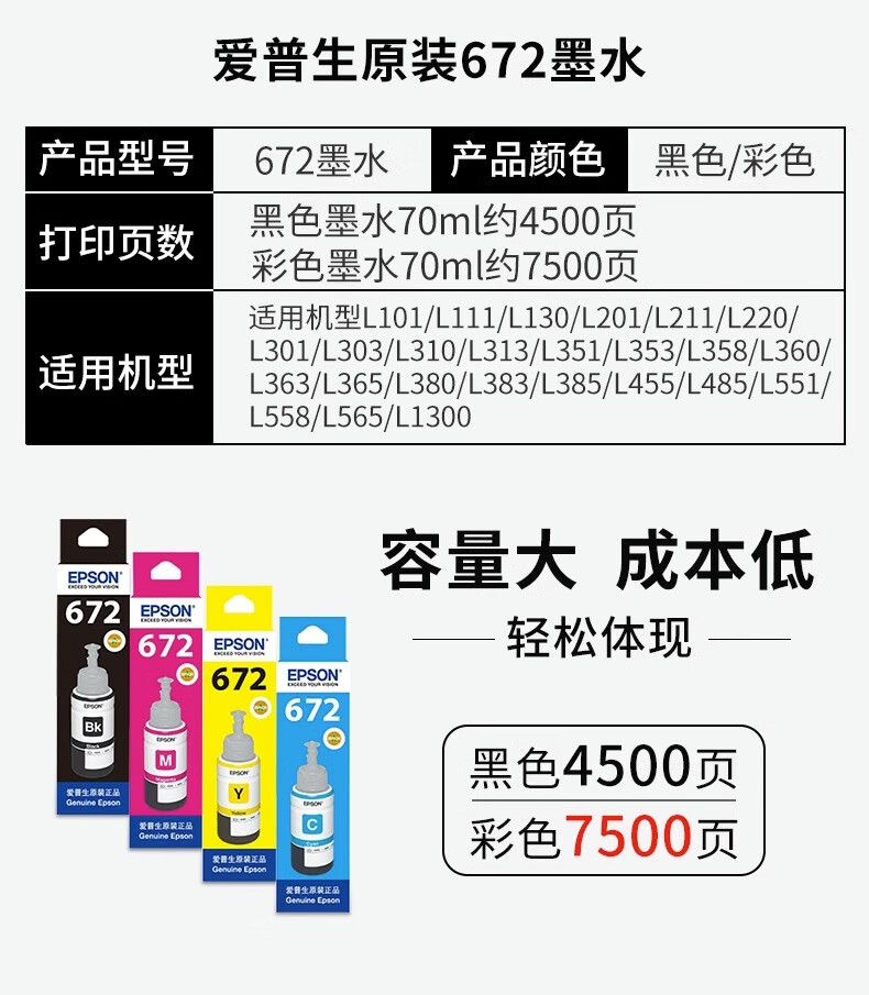 爱普生 原装墨水 T672 青色 老款 70ml 1瓶
