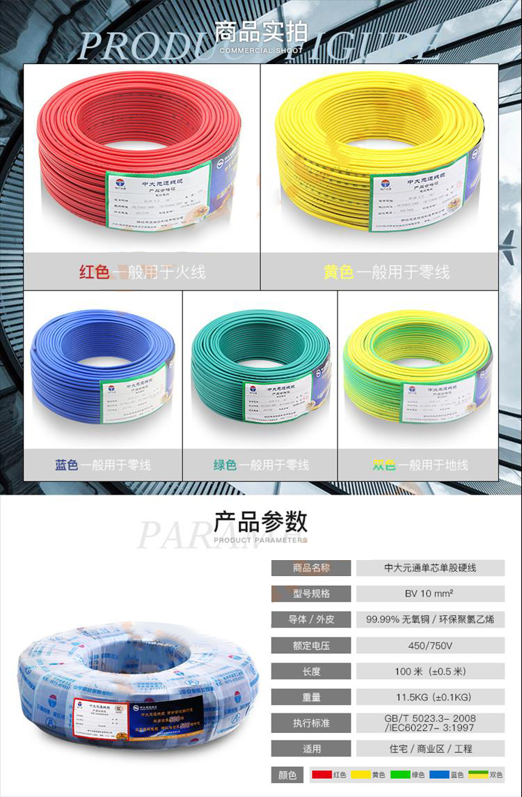 元通 铜芯聚氯乙烯绝缘布电线 BV 4 黄色 100米 1卷