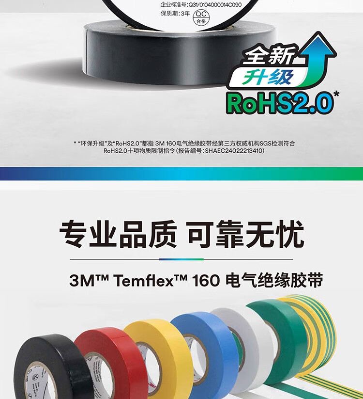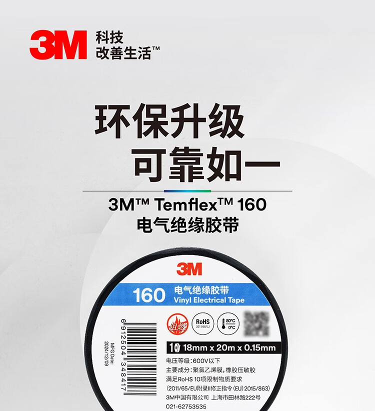 3M PVC绝缘胶带 160# 绿色 18mm*20m*0.15mm 1卷