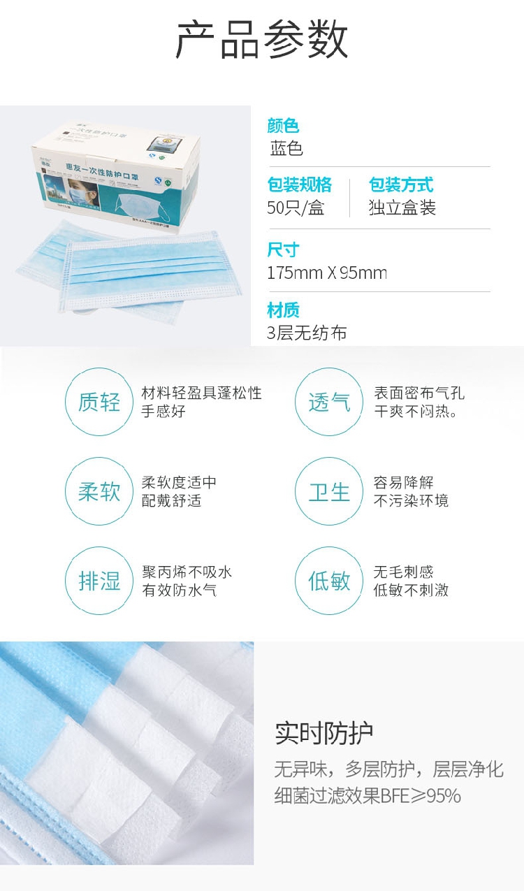 ( AAA) 蓝色三层 50只/盒/40盒/箱