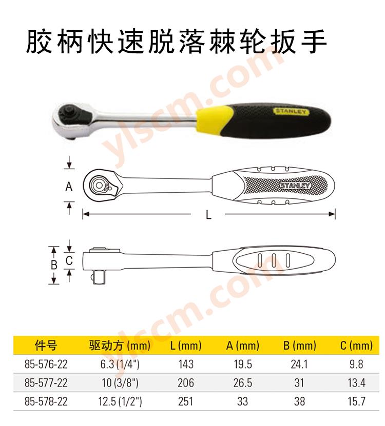 史丹利 6.3MM系列专业型双色柄棘轮扳手 STMT73982-8-23 6.3(1/4") 144mm 1把