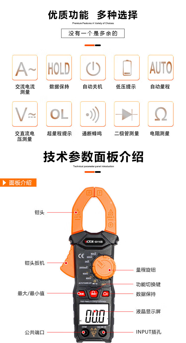 胜利仪器 高精度数字钳形表 VC6016 1个