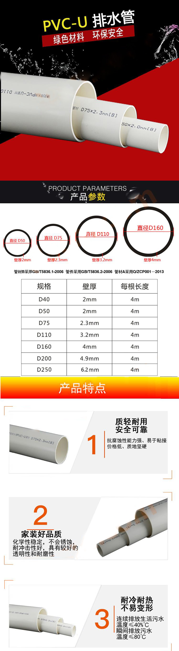 同正 PVC-U排水管材(企标管) Φ110×2.0 4米 1根