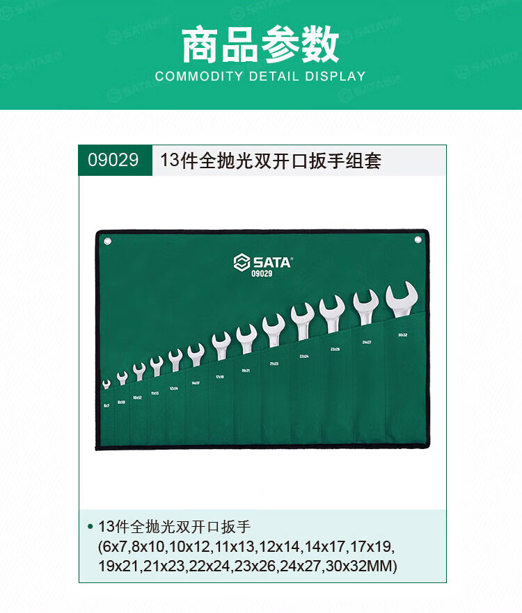 世达 全抛光双开口扳手组套 09029 6-32mm 13件 1套