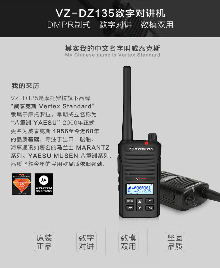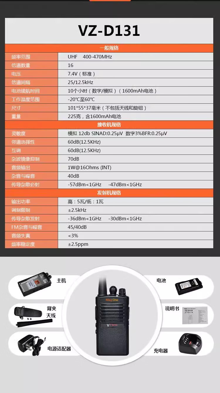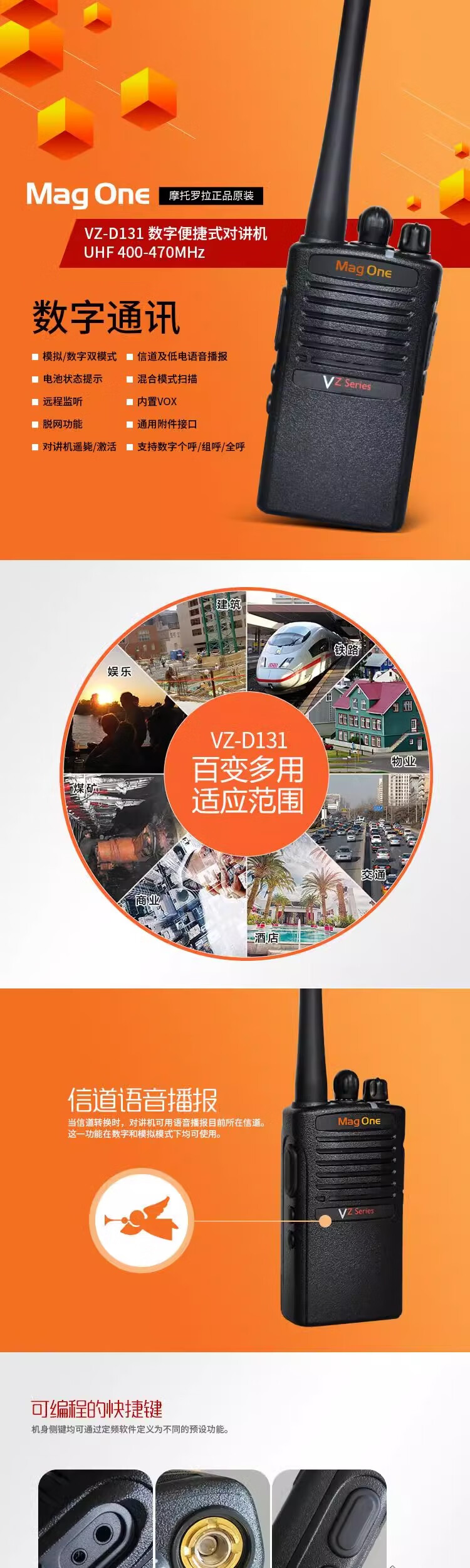 摩托罗拉 数字便携式对讲机 VZ-D131 400-470MHz 1个