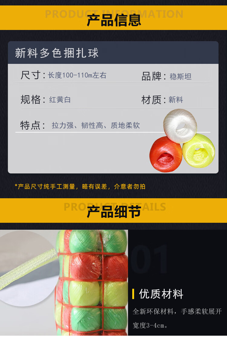 稳斯坦 尼龙绳 WST116 黄色草球绳2卷 2卷 1包