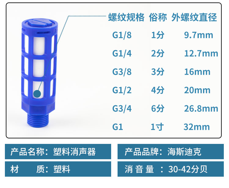 海斯迪克 气动消音器 HKCL-900 2分 长头 1个