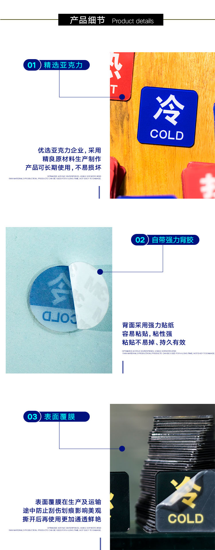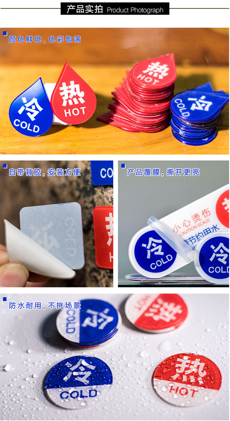海斯迪克 冷热标识贴 gnjz-1342 亚克力 红蓝 圆形 5只 1包