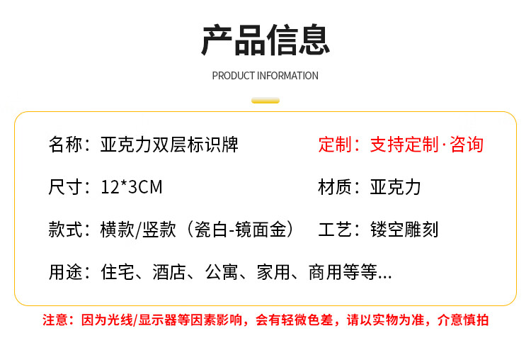 赫思迪格 亚克力提示牌 HGJ-595 横款 请按门铃 12*3cm 1个