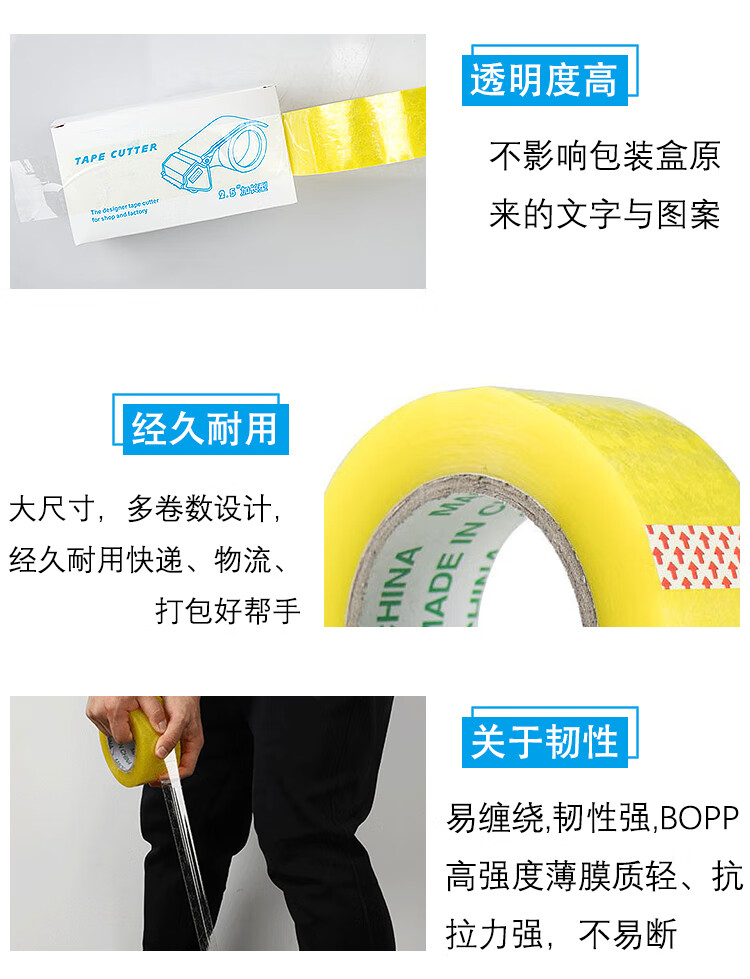 赫思迪格 打包封箱胶带 JG-1003 宽4.35cm厚3cm长165m 30卷 1包