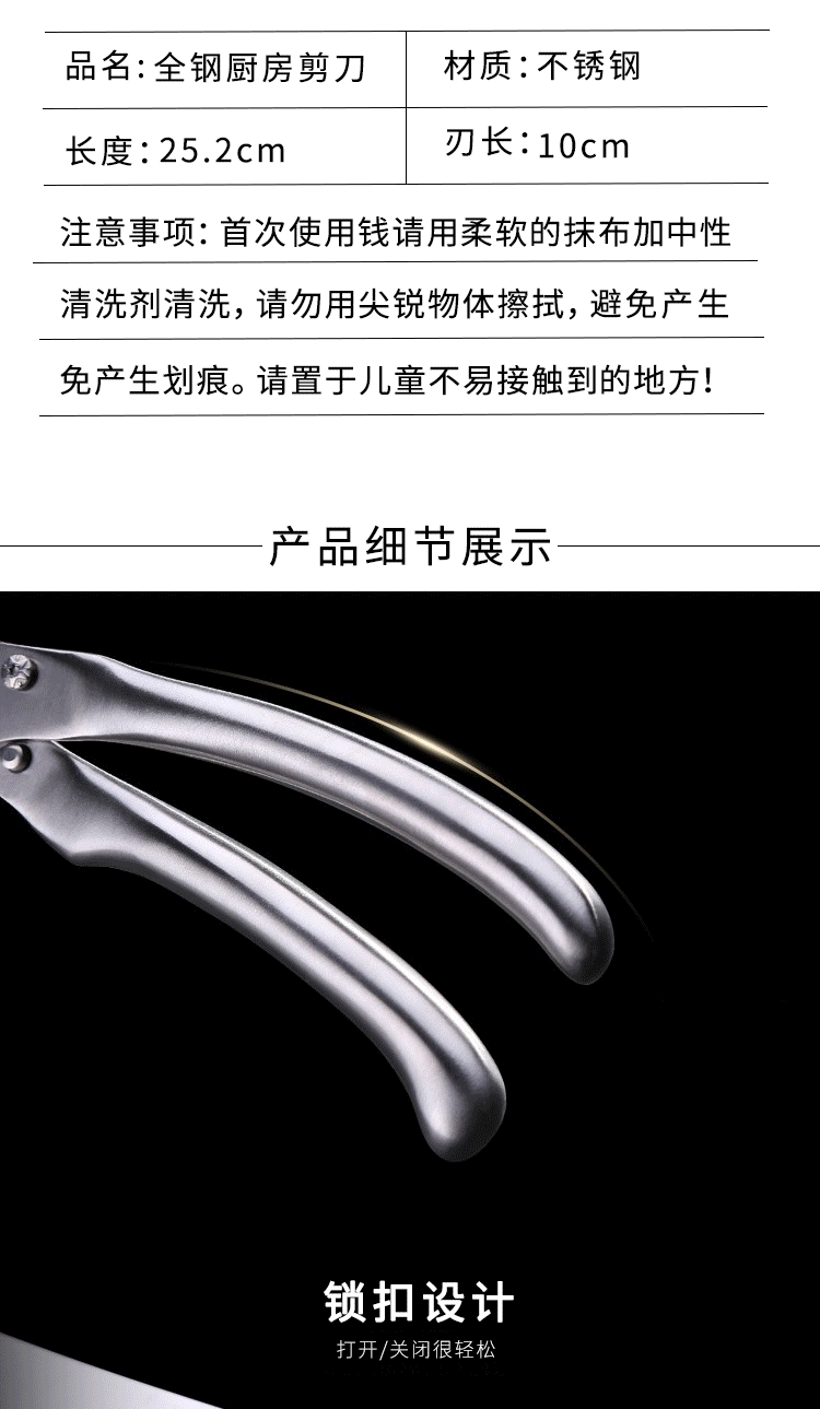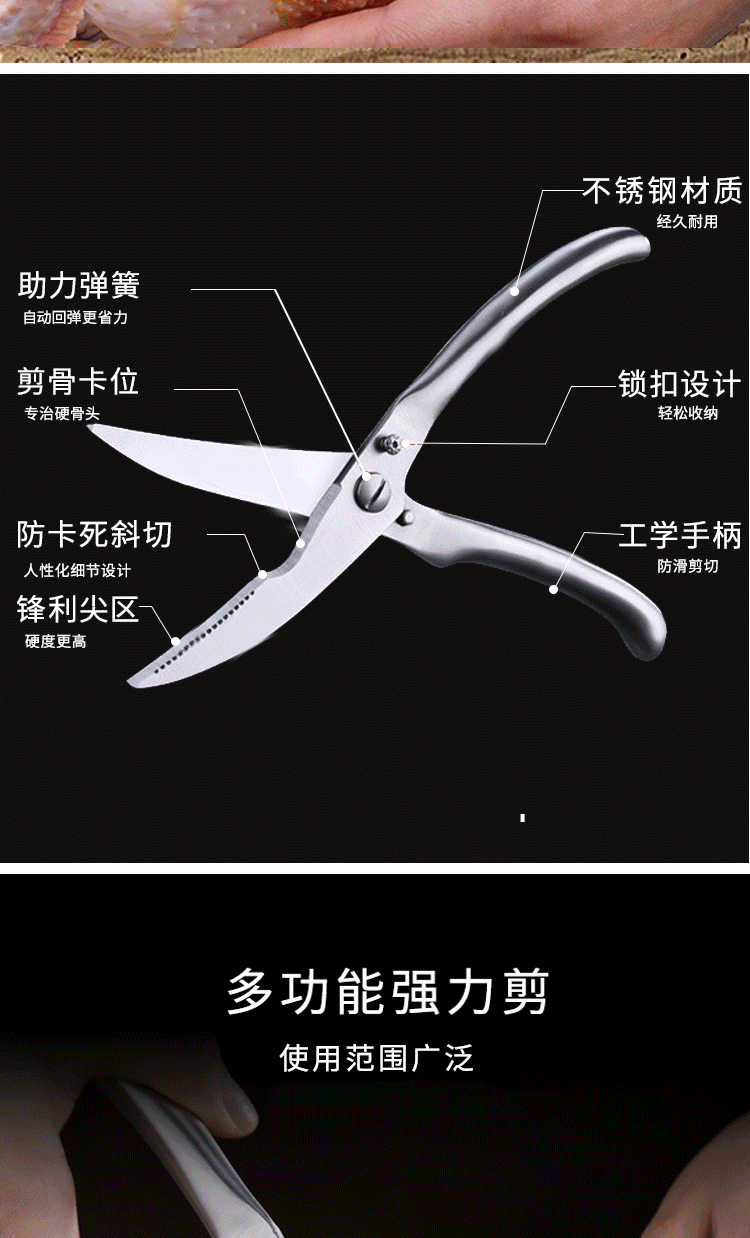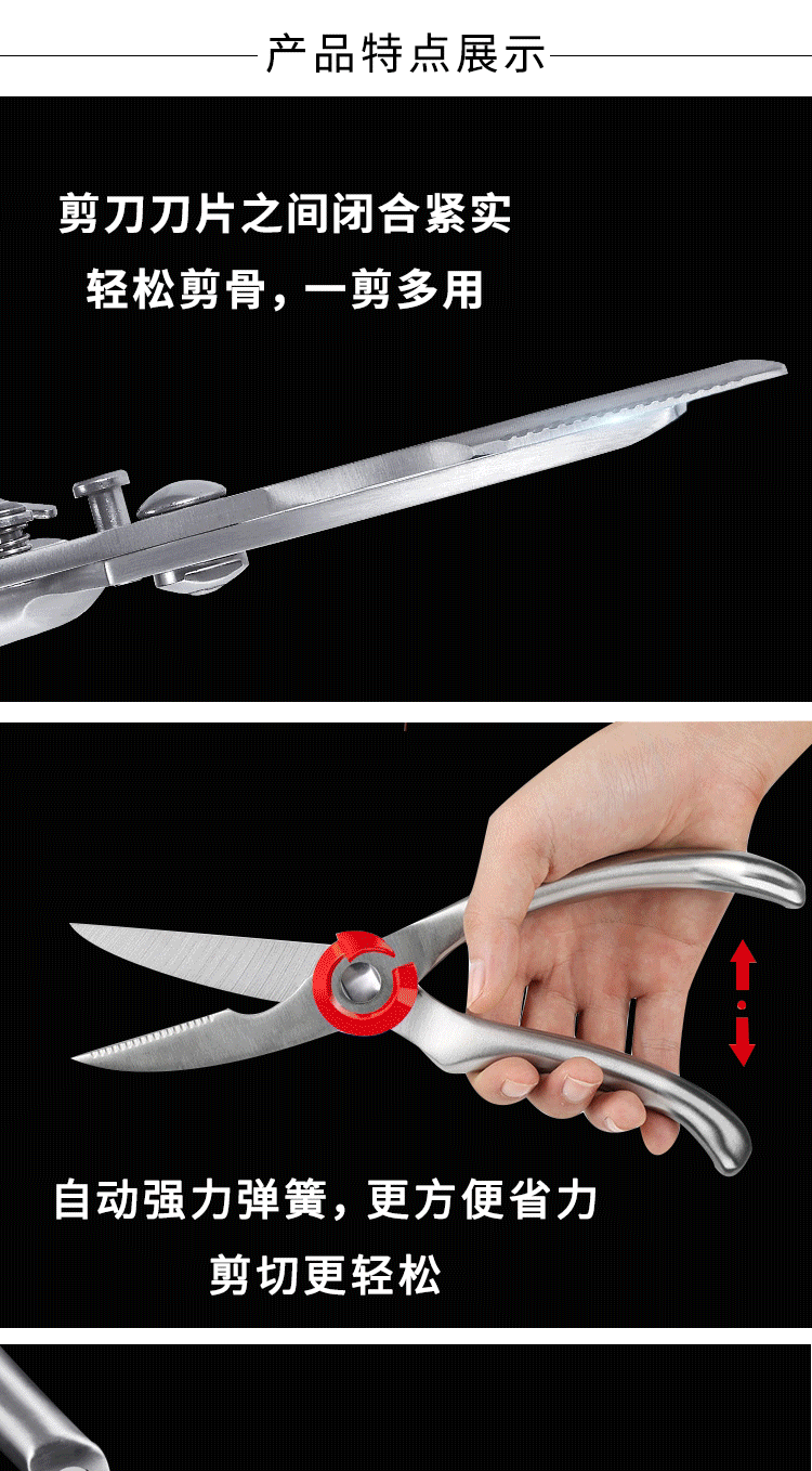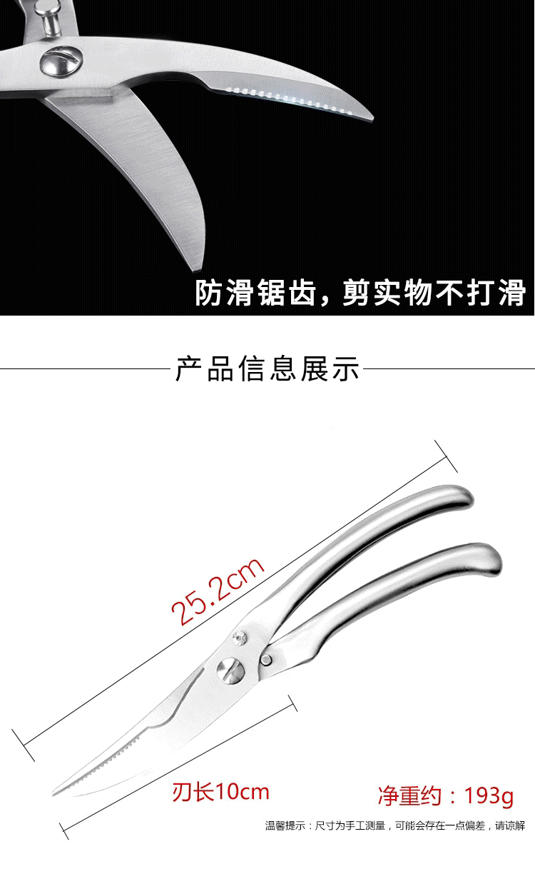 海斯迪克 强力鸡骨剪 hs-601 剪刀 不锈钢 1个