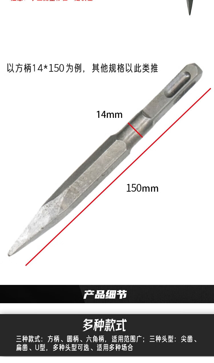 冰禹 电锤冲击钻头 BYQ-19 圆柄14*150尖 凿子 1个