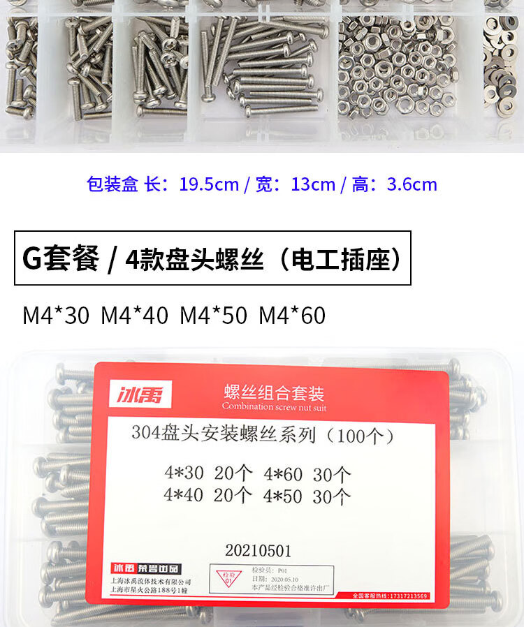 冰禹 304不锈钢十字盘头螺丝螺栓 BJjj-41 M6*40 GB818 50个 1包
