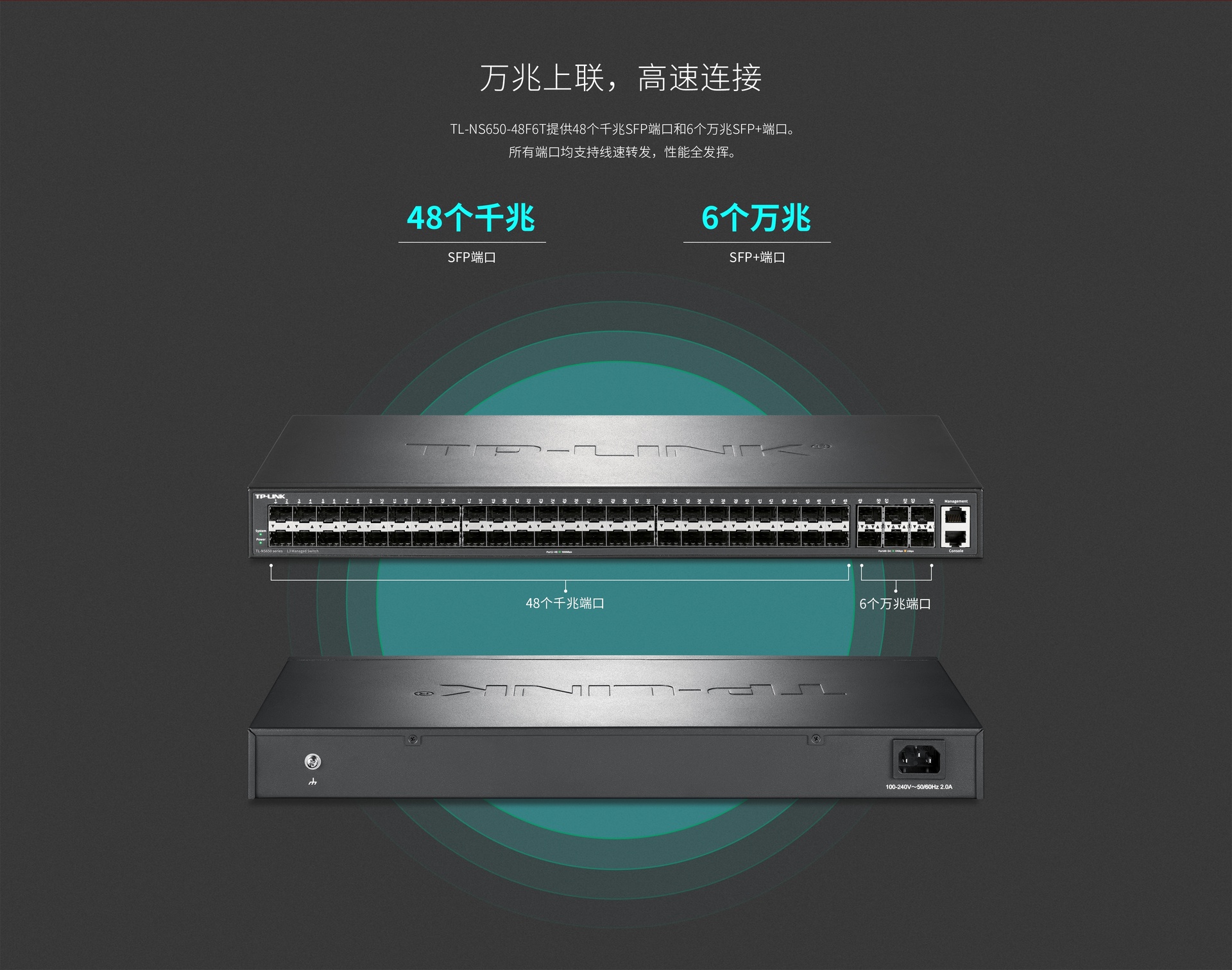 普联 万兆上联三层网管交换机 TL-NS650-48F6T(48SFP+6SFP+) 54口 1台