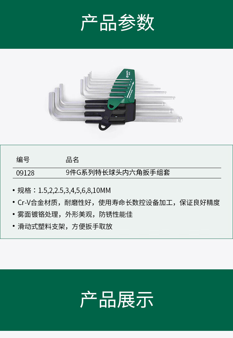 世达 G系列特长球头内六角扳手组套 09128 9件 1套