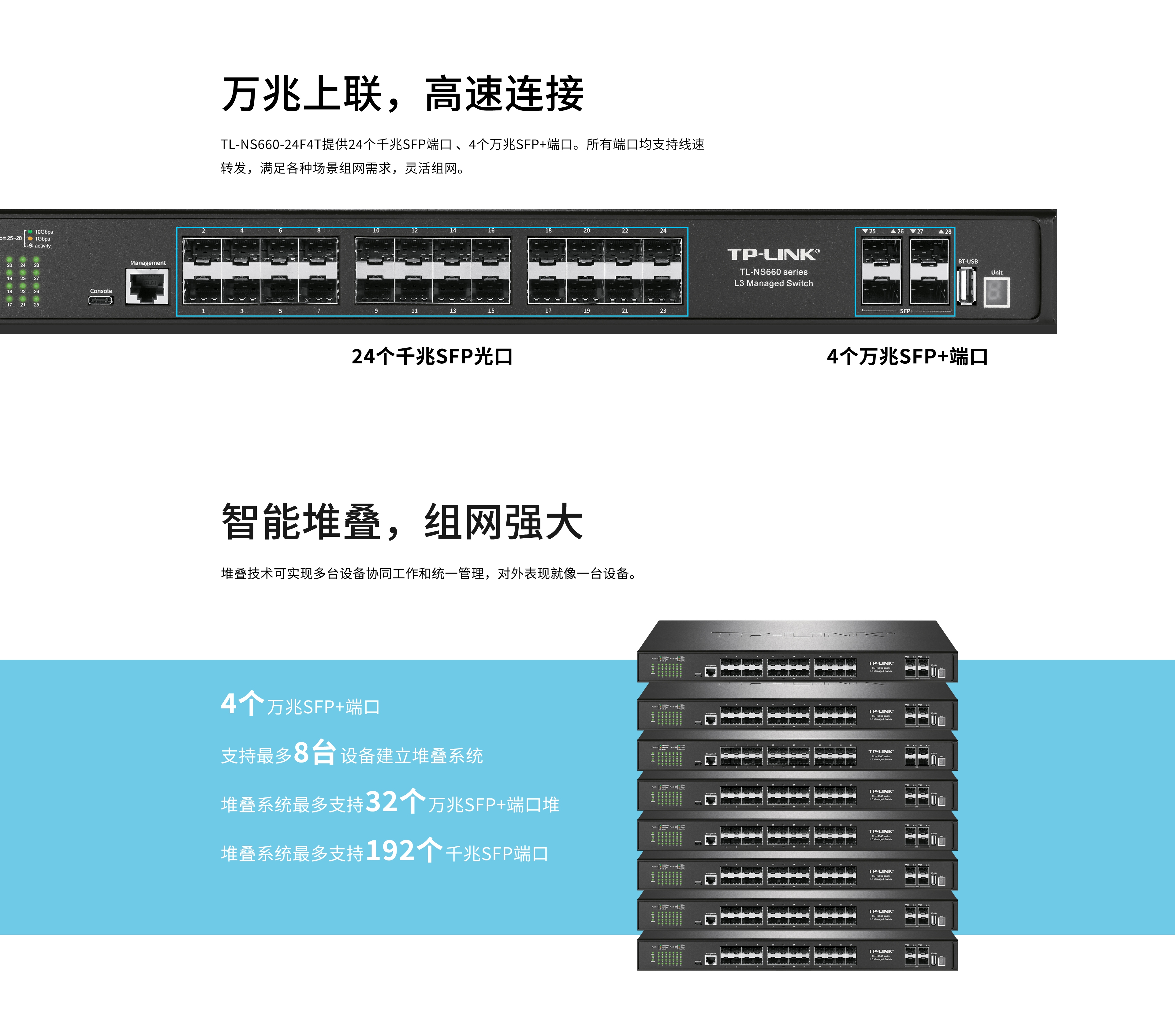 普联 全万兆堆叠式三层网管交换机 TL-NS660-24F4T 28口 1台