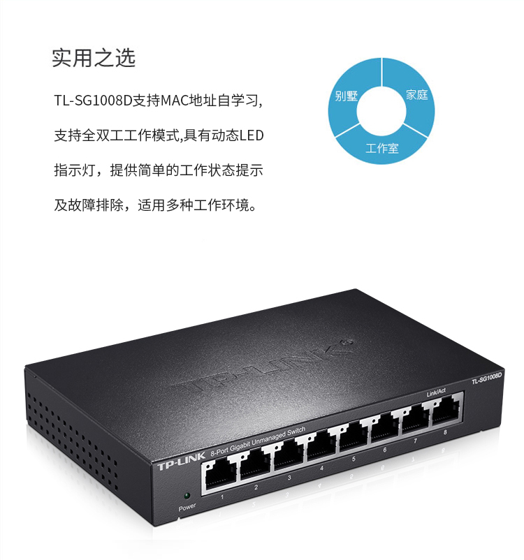 普联 全千兆以太网交换机 TL-SG1008D 8口 1台